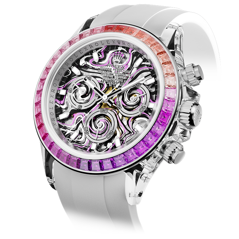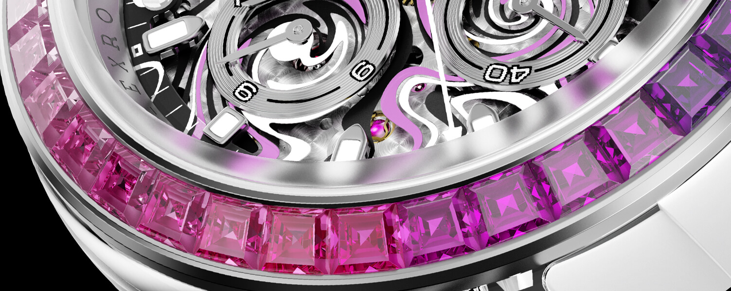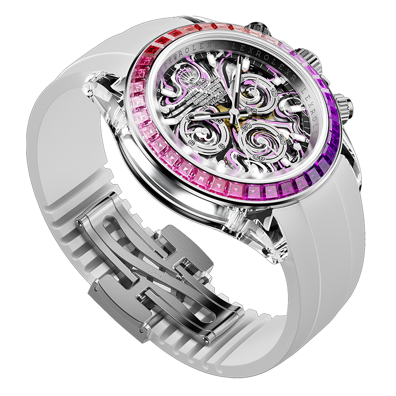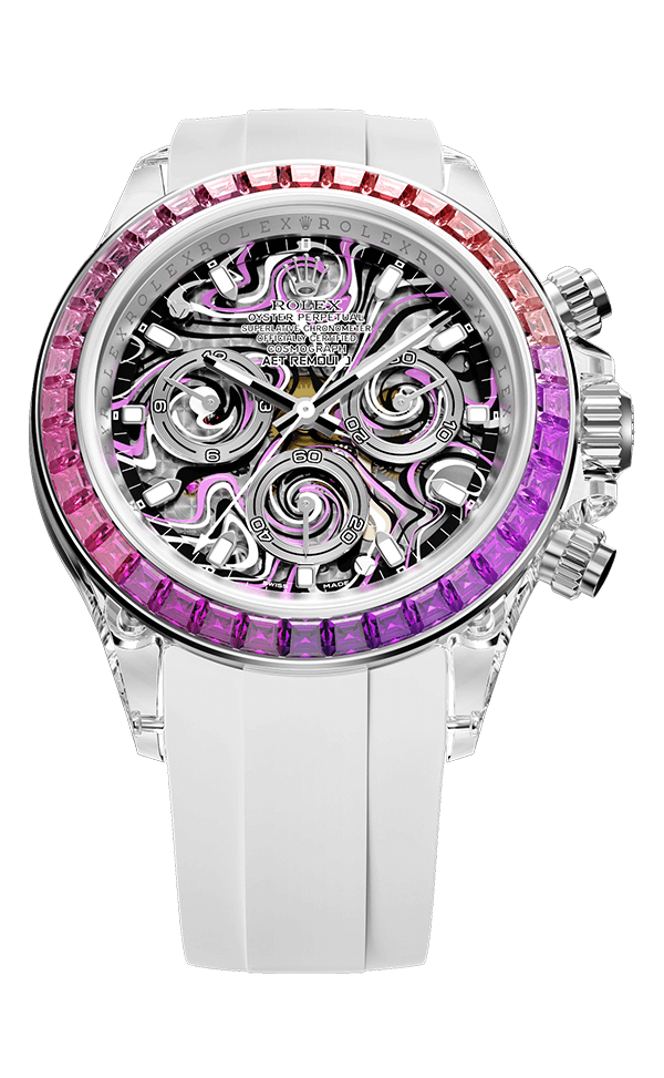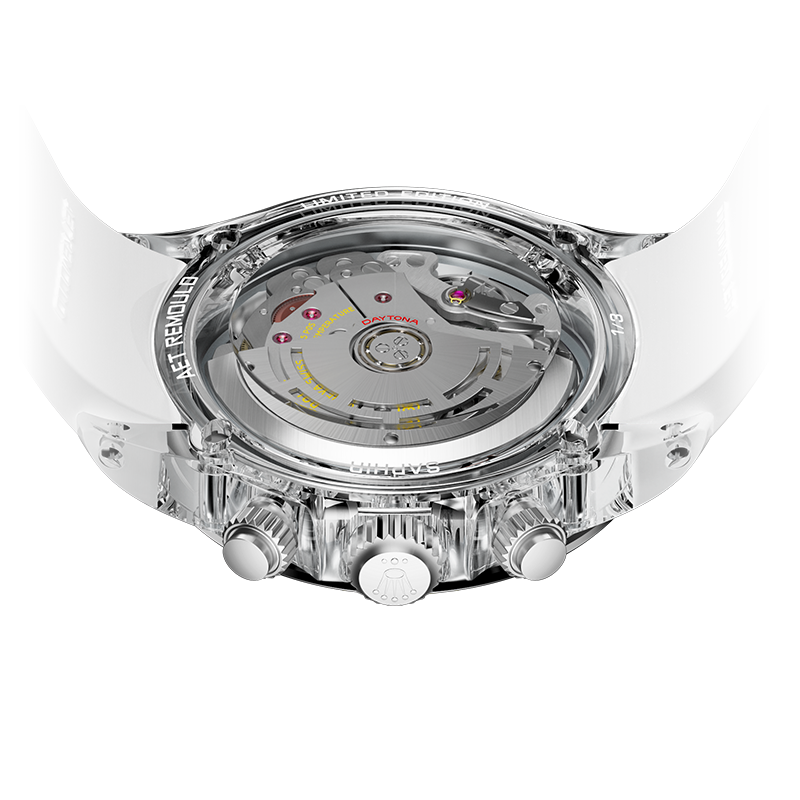蓝宝石水晶表壳既是工程的杰作,也是艺术的表现。它不仅具有清澈的透明度,能够衬托宝石的光彩,还具备卓越的硬度和耐磨性。 AET REMOULD所使用的新技术,能够精确雕刻表壳的形态,确保每个线条、孔洞等都无可挑剔。